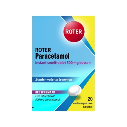 Roter Smelt Paracetamol 500mg vermindert de pijn bij bijvoorbeeld hoofdpijn, rugpijn, kiespijn, menstruatiepijn, koorts of bij een koortsaanval. Tevens handig voor onderweg, omdat je geen water nodig hebt. Paracetamol is de meest gebruikte en meest bekende pijnstiller. De voordelen van Roter Smelt Paracetamol 500 mg: