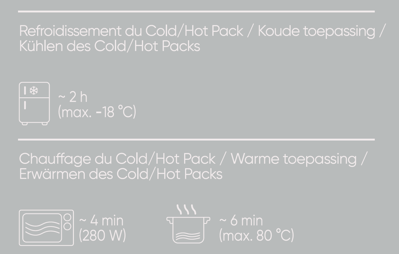 - Koel het kompres voor gebruik circa 2 uur in het vriesvak bij ongeveer -18 °C.