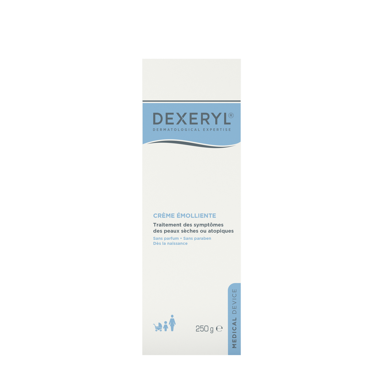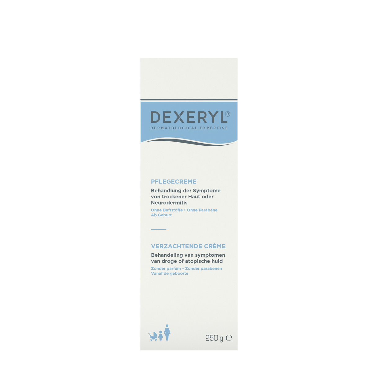 DEXERYL verzachtende crème is speciaal ontwikkeld om de droge en atopische huid van het hele gezin te verzorgen, ook geschikt bij baby's. Deze formule zonder parfum bevat geen parabenen. Hij hydrateert de huid optimaal en oefent een herstellende werking uit op de huidbarrière. Ook wordt het risico op letsels als gevolg van atopisch eczeem beperkt.
