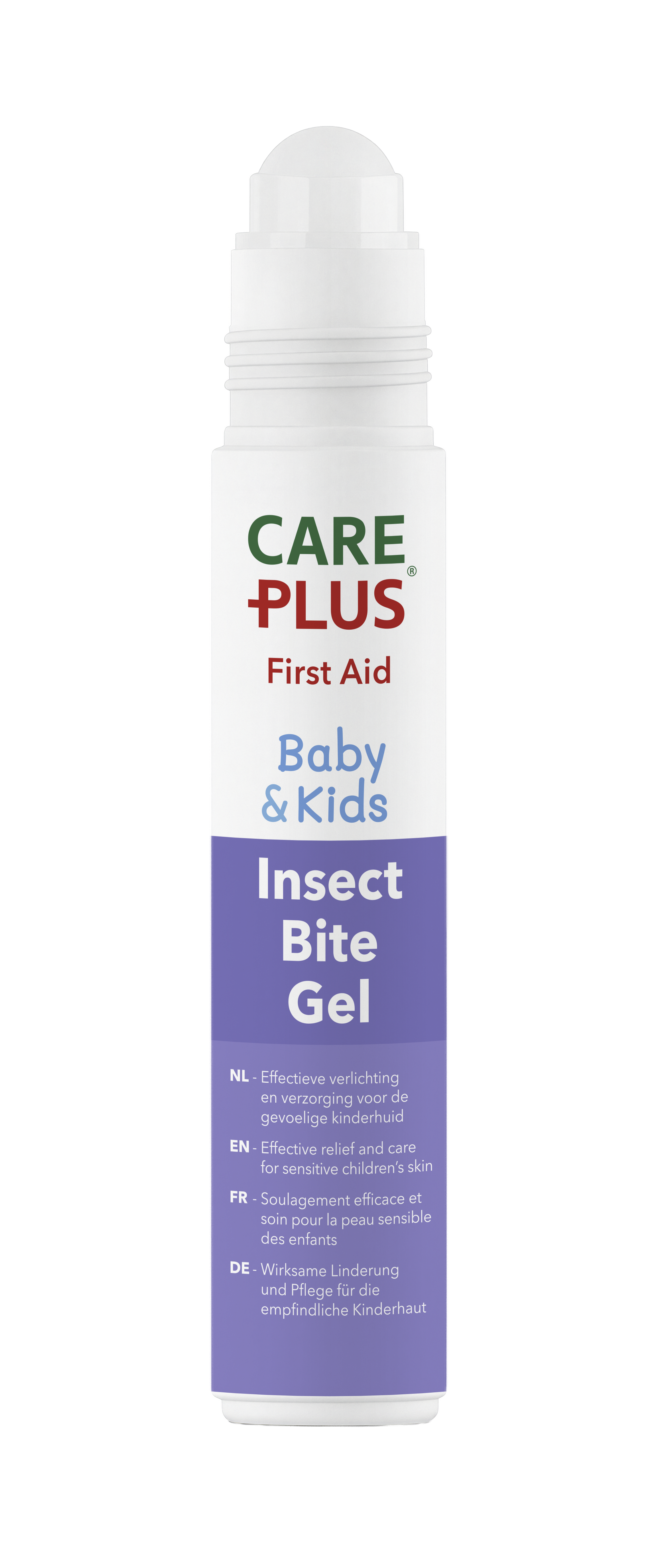 Care Plus® Baby&Kids Insect Bite Gel Roller met SymCalmin® biedt effectieve verlichting en verzorging voor de gevoelige kinderhuid bij o.a. insectenbeten of steken, processierups brandharen, kwallenbeten en brandnetels. De formule is speciaal ontwikkeld voor kinderen en baby’s vanaf 0 jaar en is met de handige soft roller makkelijk aan te brengen.