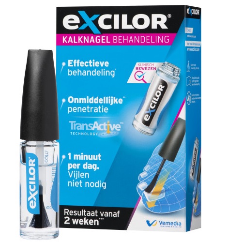 Kalknagel infecties groeien in en onder de nagel en zijn moeilijk te behandelen. Effectief werkingsmechanisme: Excilor Kalknagelbehandeling verandert de pH waarde van de nagel, zodat een vijandige omgeving wordt gecreëerd voor de schimmels (dermatofyten). Dit voorkomt verdere groei van de schimmel en aantasting van de nagel. Optimale en volledige penetratie: Excilor Kalknagelbehandeling bereikt de schimmel onmiddellijk. Daarna volgt direct een gezonde aangroei van de nagel. De vloeistof penetreert binnen seconden zonder een zichtbaar laagje achter te laten. Gemak: Excilor Kalknagelbehandeling is gemakkelijk aan te brengen. Vijlen van de nagel is niet nodig. Excilor is bewezen effectief.