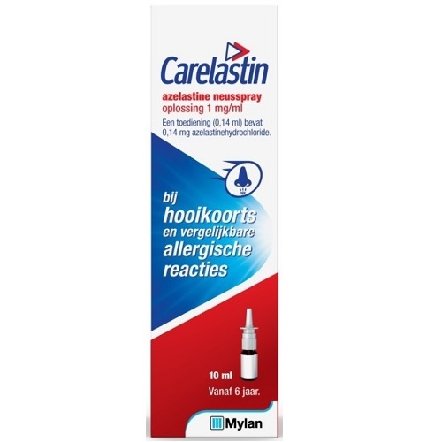 Carelastin azelastine neusspray bevat een anti-allergisch medicijn, azelastine hydrochloride, geschikt voor plaatselijke toediening in de neus. Bij een allergische reactie komen stoffen in de neus vrij (vnl. histamine) als reactie op lichaamsvreemde stoffen, bijvoorbeeld stuifmeel of huisstof. Carelastin azelastine neusspray remt de werking van dit histamine, waardoor uw klachten kunnen verminderen.