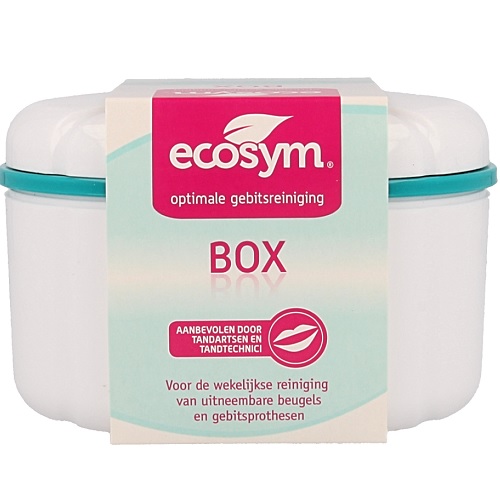 Ecosym Gebitsbakje is speciaal ontworpen voor de wekelijkse reiniging van uitneembare gebitsprothesen en beugels in combinatie met Ecosym Week Forte.