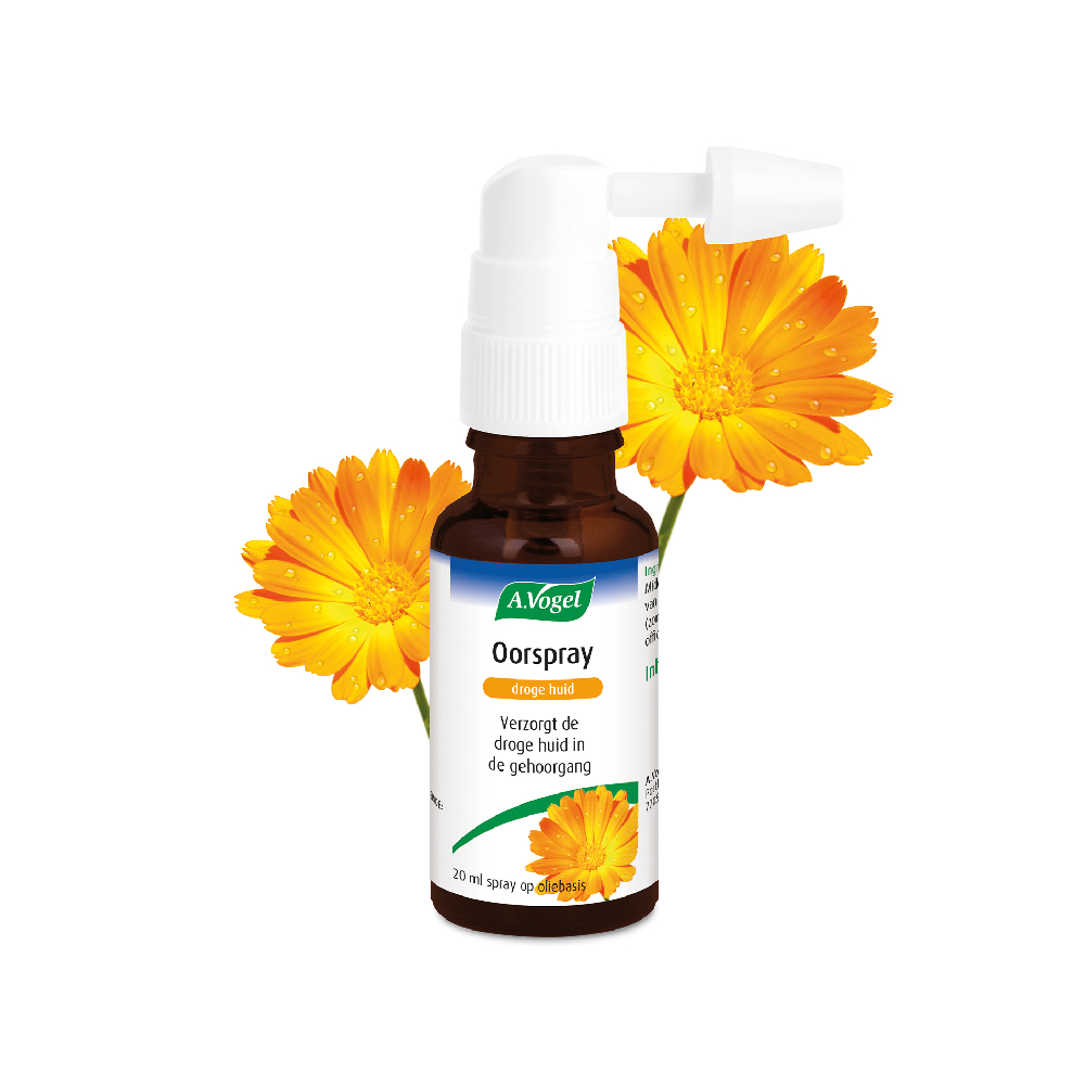 Droge huid in de gehoorgang? A.Vogel Oorspray droge huid helpt. De spray bevat een natuurlijke olie die een laagje vormt op de oorhuid. De olie verzacht en verzorgt de droge huid in de gehoorgang.