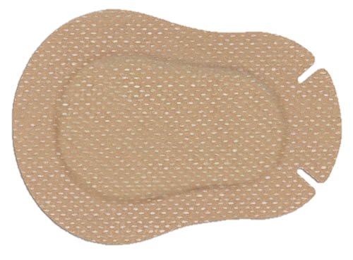 Zelfklevende achterkant (100% viscose bamboe non-woven tissue geverfd met pigmenten op waterbasis, gedroogd door middel van warmte of UV-uitharding + “hot melt pressure sensitive” kleefstof). Occlusiekussen van trilaminaatmateriaal (viscose, polypropyleen, polyamide). Zelfklevende beschermlaag (monosiliciumpapier). Op deze artikelen is een “reliëfeffect” aangebracht door gebruik te maken van acrylharsen die bij verhitting opzwellen.