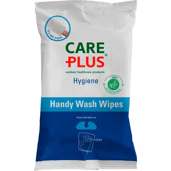 Onderweg naar het werk, tijdens het winkelen, bij het verlaten van openbare toiletten, bij een speelplaats of waar dan ook; Care Plus® Handy Wash Wipes helpen je om je fris en schoon te voelen. Gebruik de vochtige washandjes om jezelf of omgeving schoon te maken. De Care Plus® Handy Wash Wipes geven geen plakkerig gevoel op de huid, zijn pH neutraal en dermatologisch getest. Ze zijn vrij van plastic en 100% biologisch afbreekbaar. Sluit na gebruik de verpakking en gooi het gebruikte doekje in de afvalemmer. Niet door het toilet spoelen. Met de producten van Care Plus® ben jij te allen tijde verzekerd van een optimale hygiëne. Onze hygiëne producten zijn handzaam, licht verpakt en optimaal afgestemd op de wensen en behoeften van reizigers maar ook voor de mensen thuis.