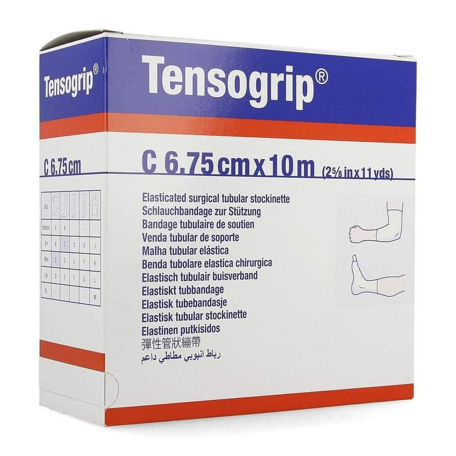 Tensogrip is bijzonder huidvriendelijk door de combinatie van goede lucht- en waterdampdoorlatende eigenschappen. • Dankzij de duurzame breedte-elasticiteit verschuift het verband niet en zorgt het voor een lichte compressiewerking. • Tensogrip® is meerdere malen bruikbaar en kan zonder verlies van eigenschappen gewassen worden