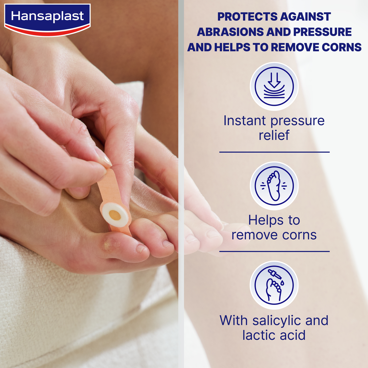 De Hansaplast Likdoornpleisters zijn bedoeld om pijn door druk op huidlaesies te voorkomen, om te beschermen tegen schaafwonden en om likdoorns op een effectieve en veilige manier te helpen verwijderen.