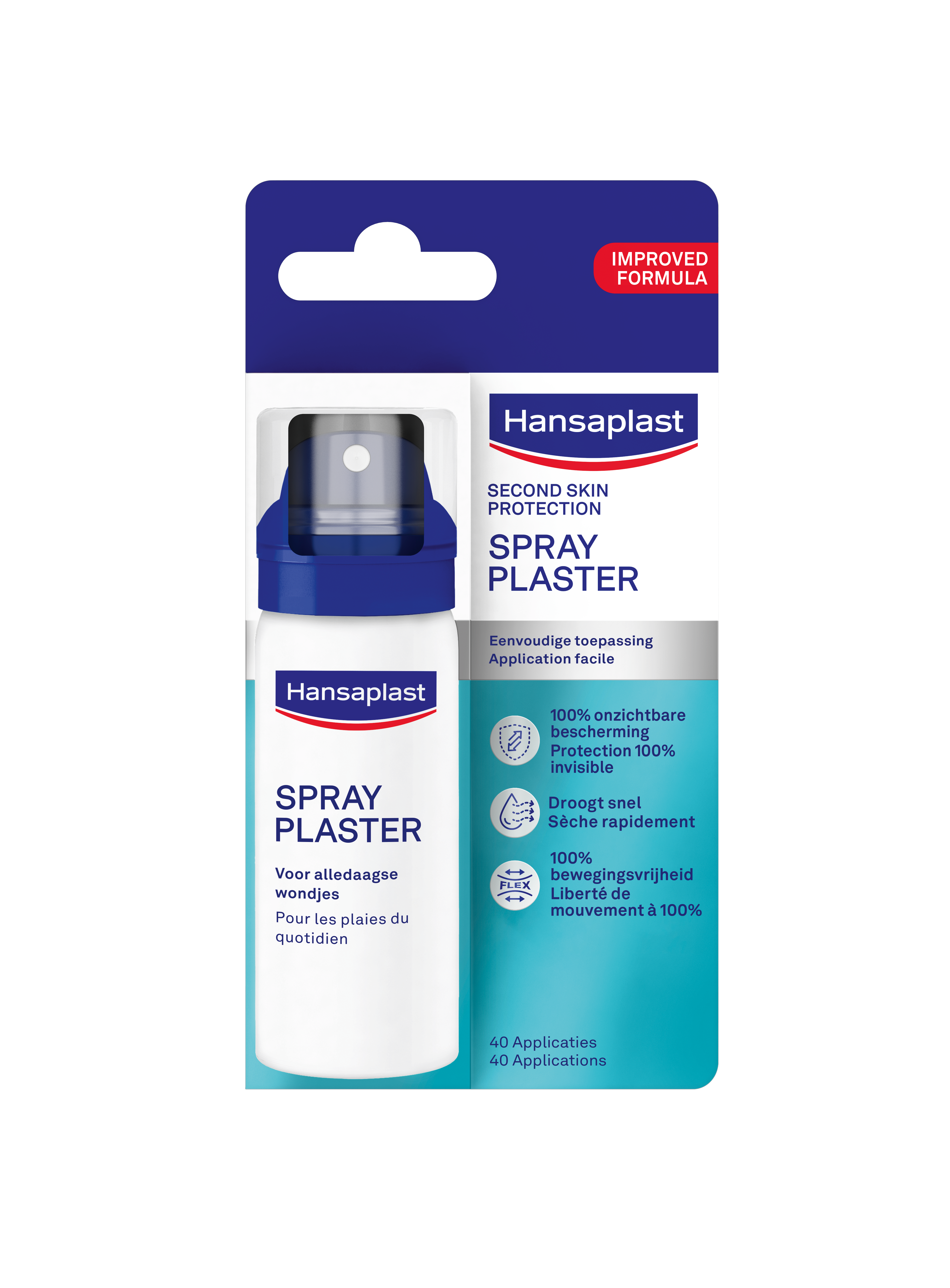 - 100% BEWEGINGSVRIJHEID: De Hansaplast Plaster Spray creëert een ultradunne en flexibele film die aanvoelt als een tweede huid en 100% bewegingsvrijheid biedt.
