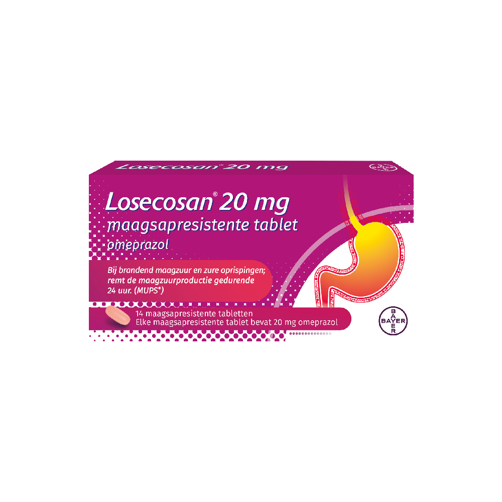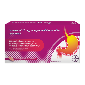Losecosan wordt gebruikt voor de effectieve behandeling van frequent terugkomend brandend maagzuur en zure oprispingen bij volwassenen. Losecosan reguleert de maagzuurproductie in de maagwand, zodat er genoeg, maar niet te veel maagzuur wordt geproduceerd. De werkzame stof van Losecosan is 20mg omeprazol. Omeprazol vermindert de hoeveelheid zuur die de maag aanmaakt. Losecosan zorgt gedurende 24 uur voor een effectieve remming van de maagzuurproductie. Losecosan 20mg niet gelijktijdig gebruiken met nelfinavir.