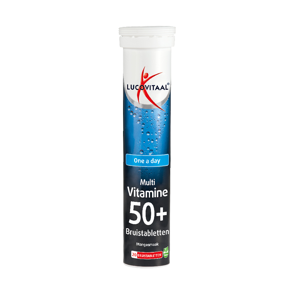 Multivitaminen in de vorm van een bruistablet speciaal voor 50-plussers. Deze Multi heeft een gunstige invloed op de algehele gezondheid en vitaliteit. Vitamine C zorgt mede voor een goede weerstand en Vitamine B12 is goed voor het celdelingsproces. De bruistabletten met mangosmaak.