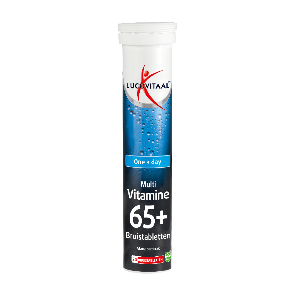 Multivitaminen in de vorm van een bruistablet speciaal voor 65-plussers. Deze Multi heeft een gunstige invloed op de algehele gezondheid en vitaliteit, bevat een dosering Vitamine D3 én bevat Panax Ginseng. Ook bevatten de bruistabletten Vitamine C, wat het energieniveau ondersteunt. De bruistabletten met mangosmaak.