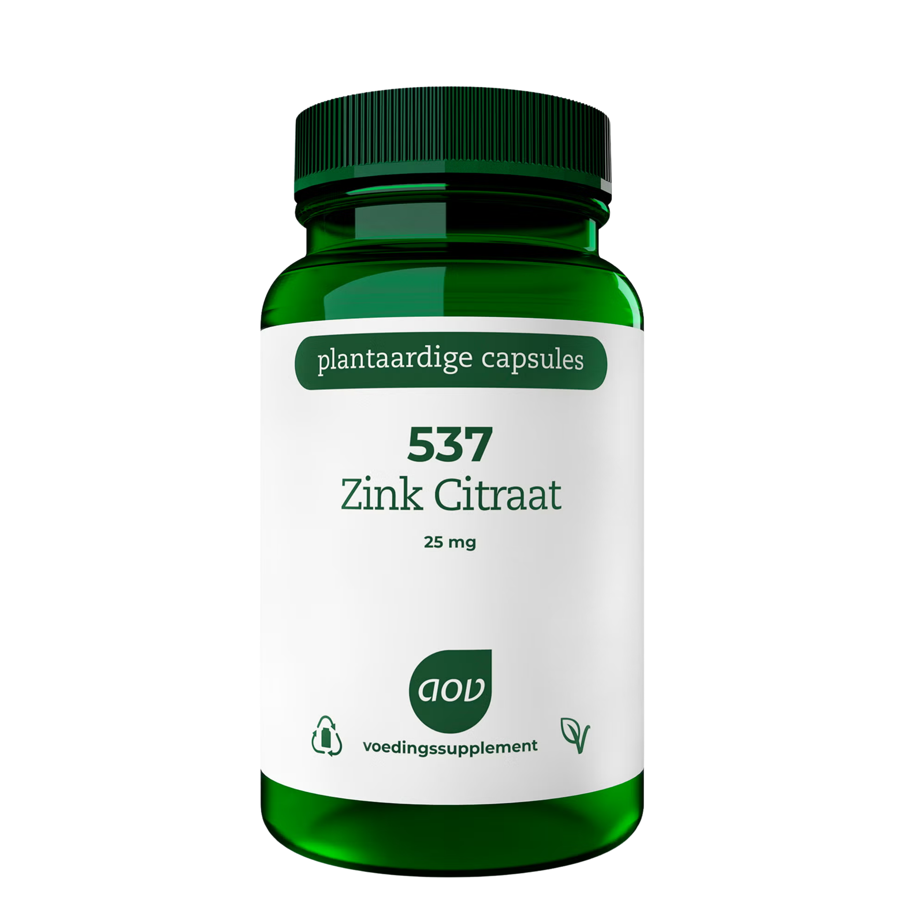 537 Zink Citraat 25 mg Dit zink supplement bevat 25 mg organisch gebonden zink per vegacapsule. De AOV 537 Zink Citraat 25 mg vegacaps bevatten geen hulpstoffen. Zink zorgt mede voor de normale werking van het immuunsysteem. Het draagt bij aan een goede weerstand en ondersteunt de afweer van het lichaam. Het speelt een rol bij de groei in ontwikkeling van weefsel en de opbouw van eiwitten in je lichaam. Zink Citraat met 25 mg zink per vegacapsule