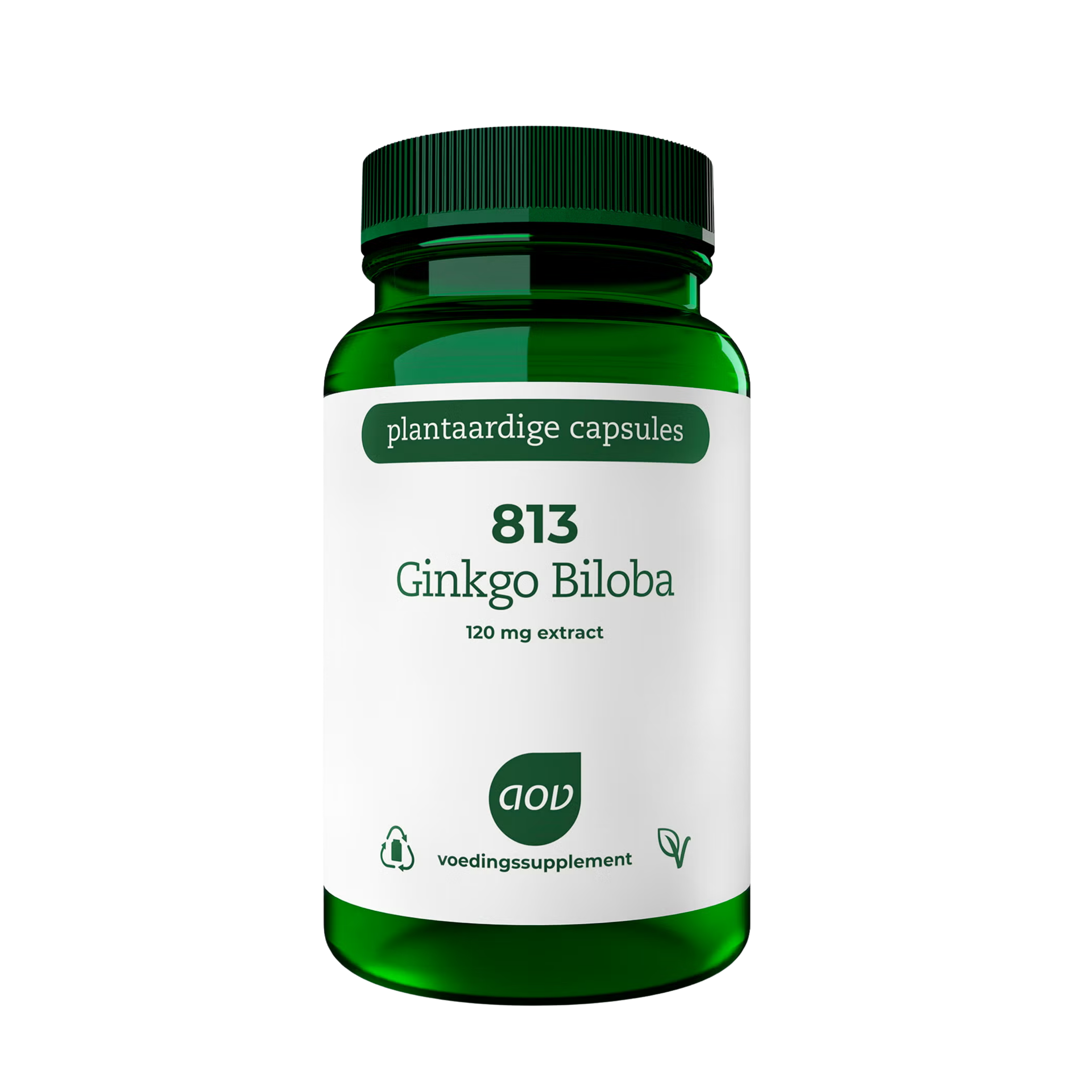 Ginkgo Biloba extract is afkomstig van de gelijknamige Japanse Tempelboom. Het extract wordt gewonnen uit de gedroogde groene bladen van de Ginkgoboom. 813 Ginkgo Biloba-extract bevat per dagdosering (2 vegacaps) 240 mg gestandaardiseerd Ginkgo biloba-extract. Het gebruik van Ginkgo Biloba-extract tijdens de zwangerschap of borstvoeding wordt afgeraden. KAG-nr. 431-0421-7602