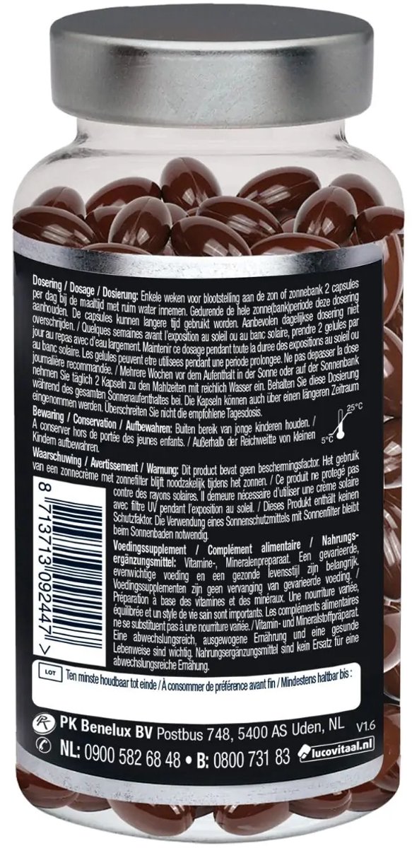 Enkele weken voor blootstelling aan de zon of zonnebank 2 capsules per dag bij de maaltijd met ruim water innemen. Gedurende de hele zonne(bank)periode deze dosering aanhouden. De capsules kunnen langere tijd gebruikt worden. Aanbevolen dagelijkse dosering niet overschrijden.
