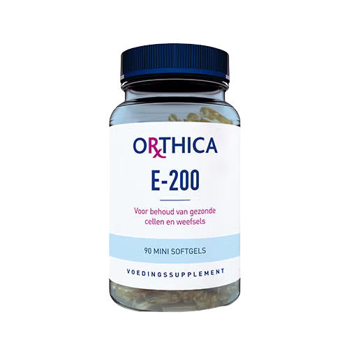 Orthica E‑200 bevat 134 mg natuurlijke vitamine E (D‑alfa‑tocoferol) per mini‑softgel en ondersteunt het behoud van gezonde cellen en weefsels.