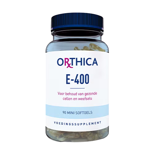 Orthica E‑400 bevat 268 mg natuurlijke vitamine E per mini‑softgel en ondersteunt het behoud van gezonde cellen en bescherming tegen oxidatieve stress.