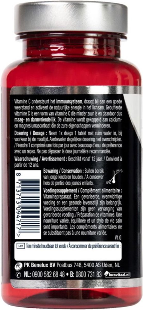Vitamine C ondersteunt het immuunsysteem, draagt bij aan een goede weerstand en activeert de natuurlijke energie in het lichaam. Gebufferde vitamine C is een vorm van vitamine C die minder zuur is en daardoor dus maag- en darmvriendelijk. De vitamine wordt gekoppeld aan calcium- en magnesiumascorbaat die de zure eigenschappen verminderen.