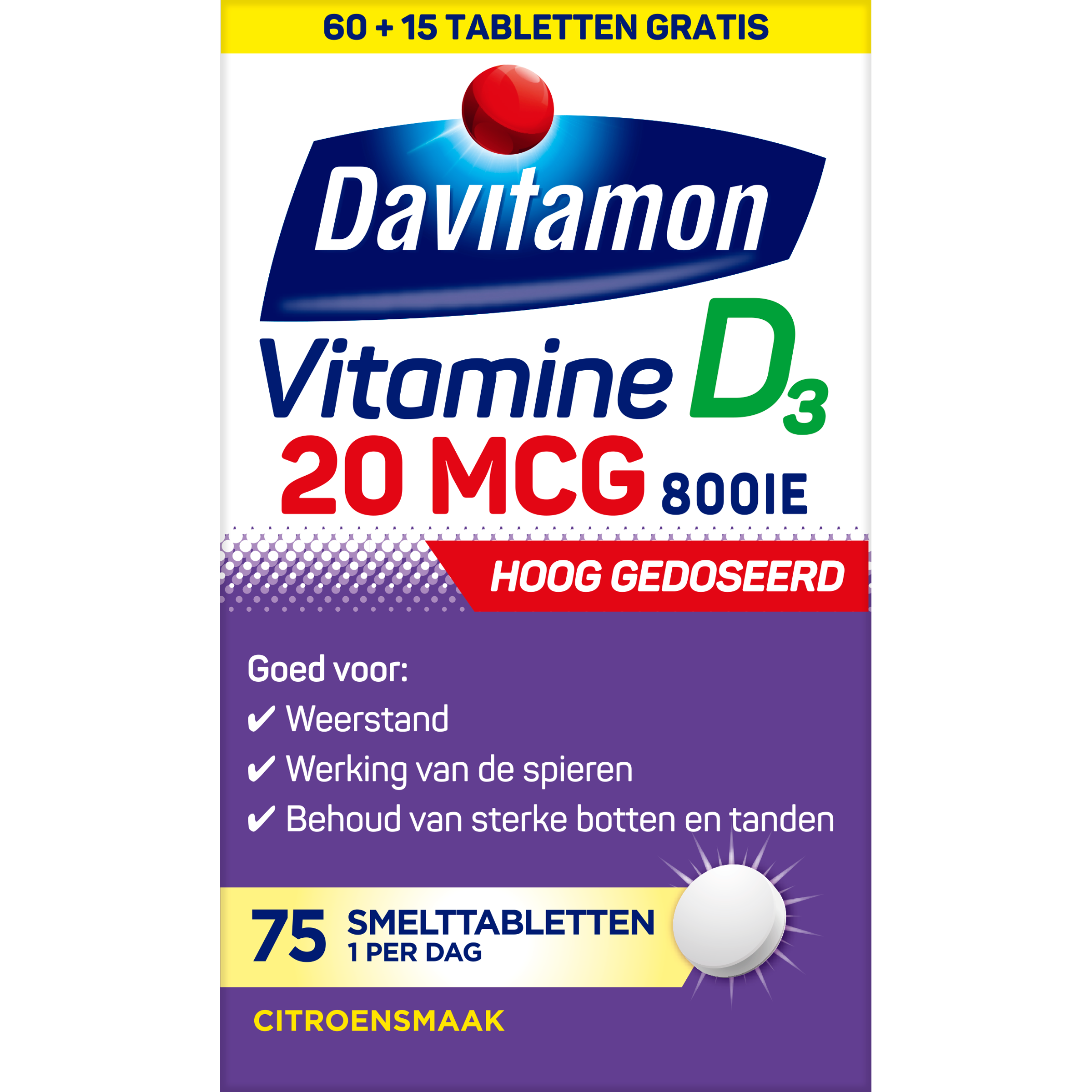 Davitamon Vitamine D 20 mcg Melt tabs 60+15ST