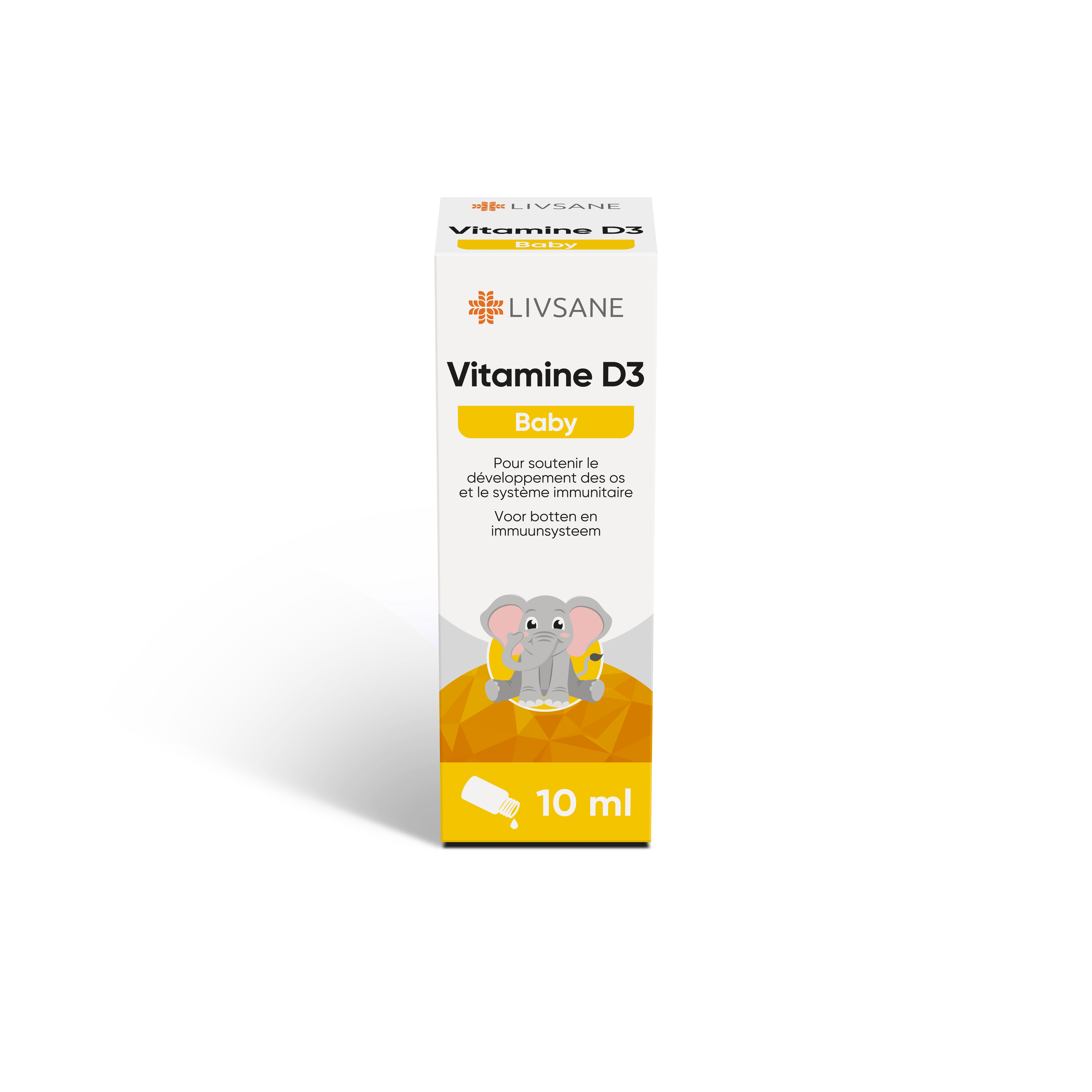 LIVSANE Vitamine D3 Druppels Baby Suikervrij is een voedingssupplement speciaal ontwikkeld voor zuigelingen en jonge kinderen. Deze vitamine D druppels ondersteunen de normale groei en ontwikkeling van de botten en tanden van je kleintje. Dankzij de druppelvorm zijn de druppels gemakkelijk toe te dienen aan vloeibare of vaste voeding, waardoor het product geschikt is voor jonge kinderen die nog niet kunnen kauwen.  Elke druppel bevat 5 mcg (200 IE) vitamine D. De Gezondheidsraad adviseert om kinderen tot 4 jaar het hele jaar door 10 mcg extra vitamine D te geven.