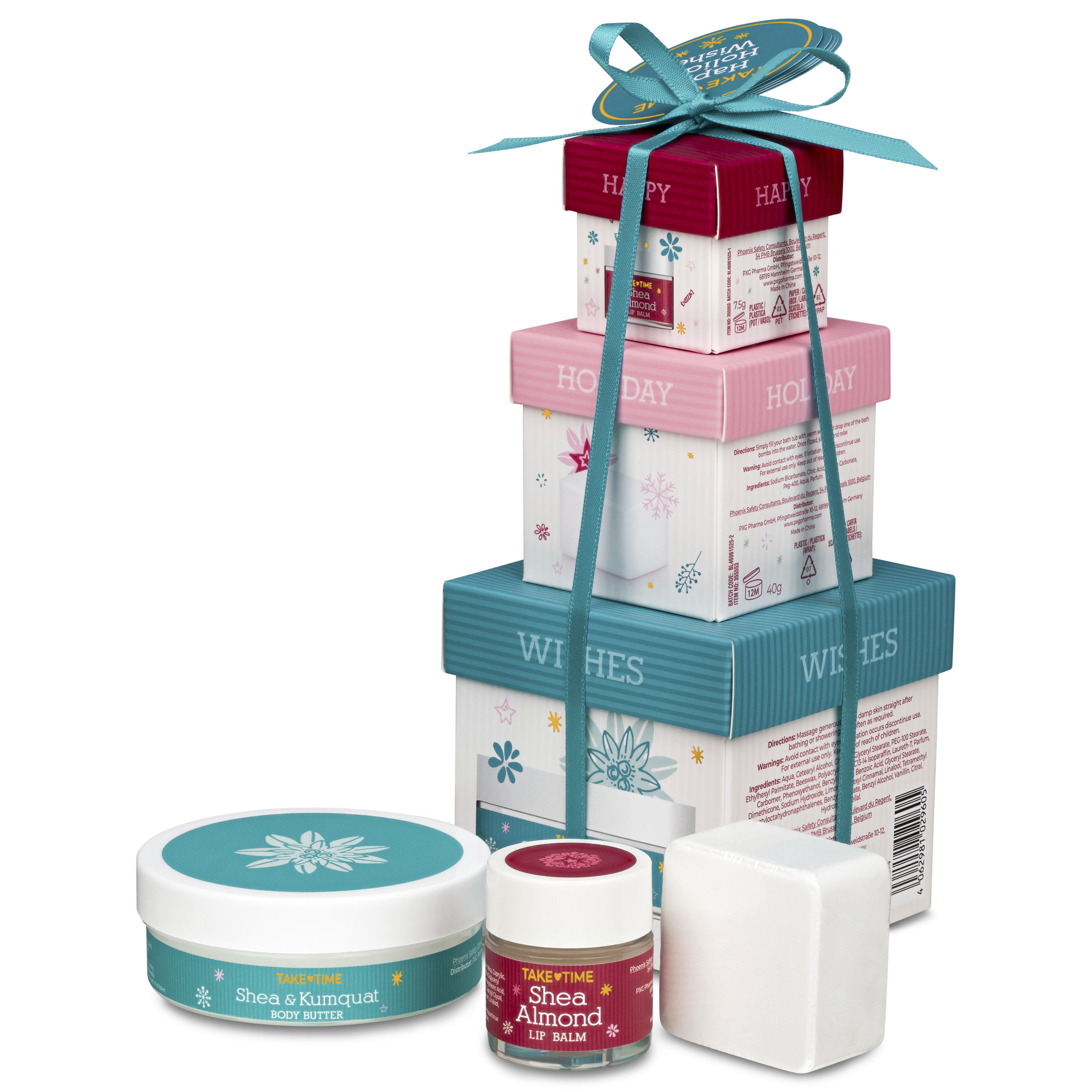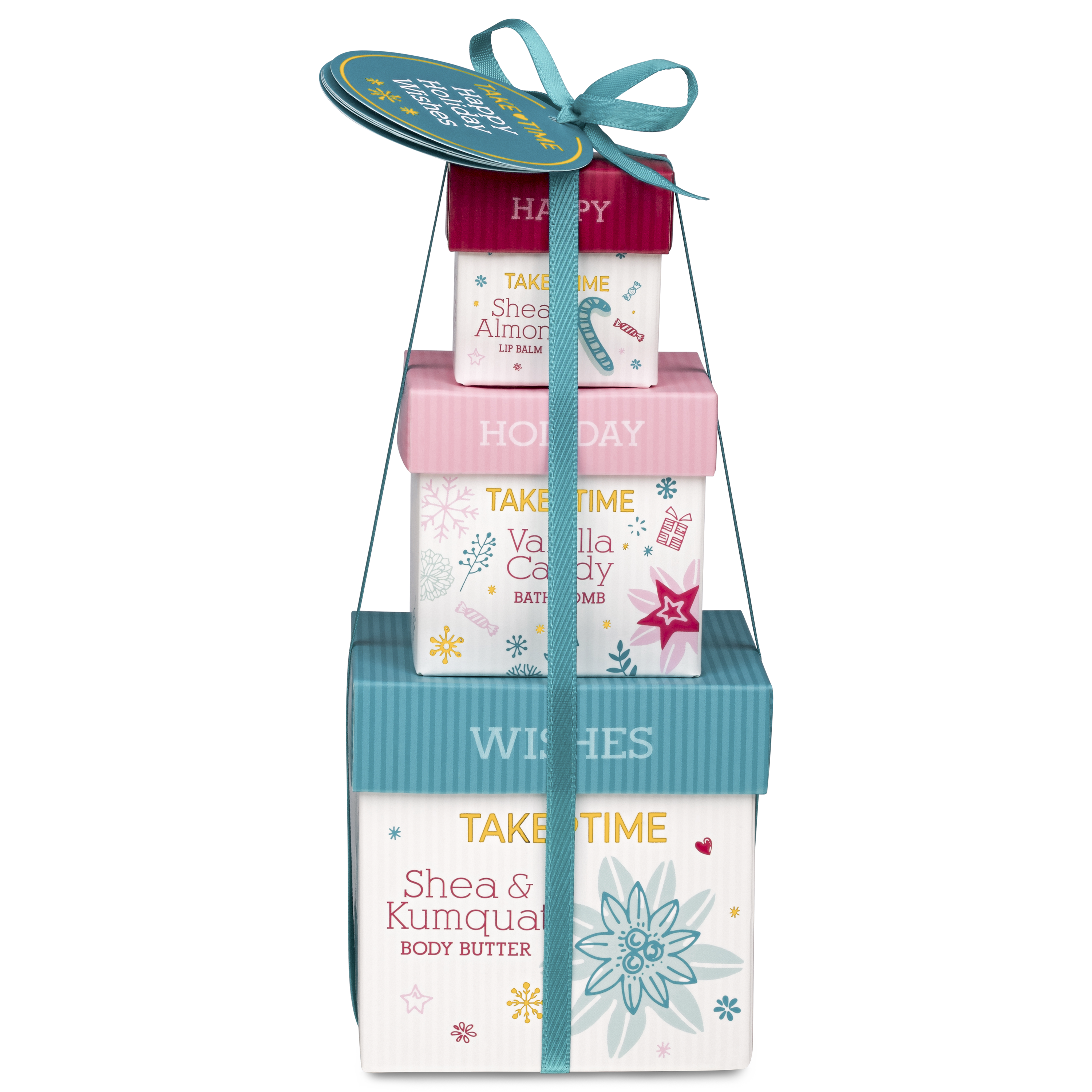 Verwen jezelf of een geliefde met de TAKE-TIME Cadeauset. Inclusief lippenbalsem, bathbomb en body butter voor complete verzorging.