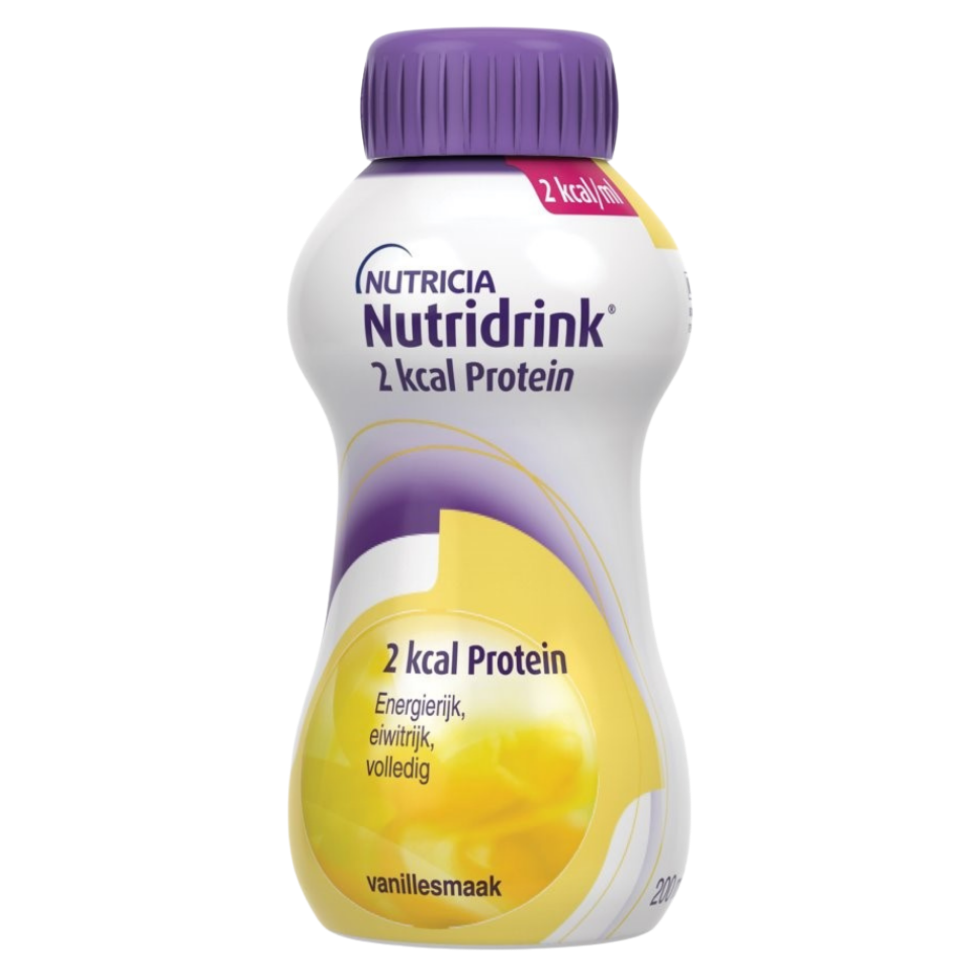 Als we ouder worden, ziek zijn of een operatie hebben ondergaan, kan het soms lastig zijn om voldoende te eten. Terwijl goede voeding juist dan extra belangrijk is. Als u via uw gewone voeding onvoldoende voedingsstoffen binnenkrijgt, dan kan het zijn dat de arts of diëtist een voeding voor medisch gebruik adviseert om uw voeding aan te vullen, zoals Nutridrink 2 kcal Protein. Nutridrink 2 kcal Protein is glutenvrij. Bevat melk en soja.