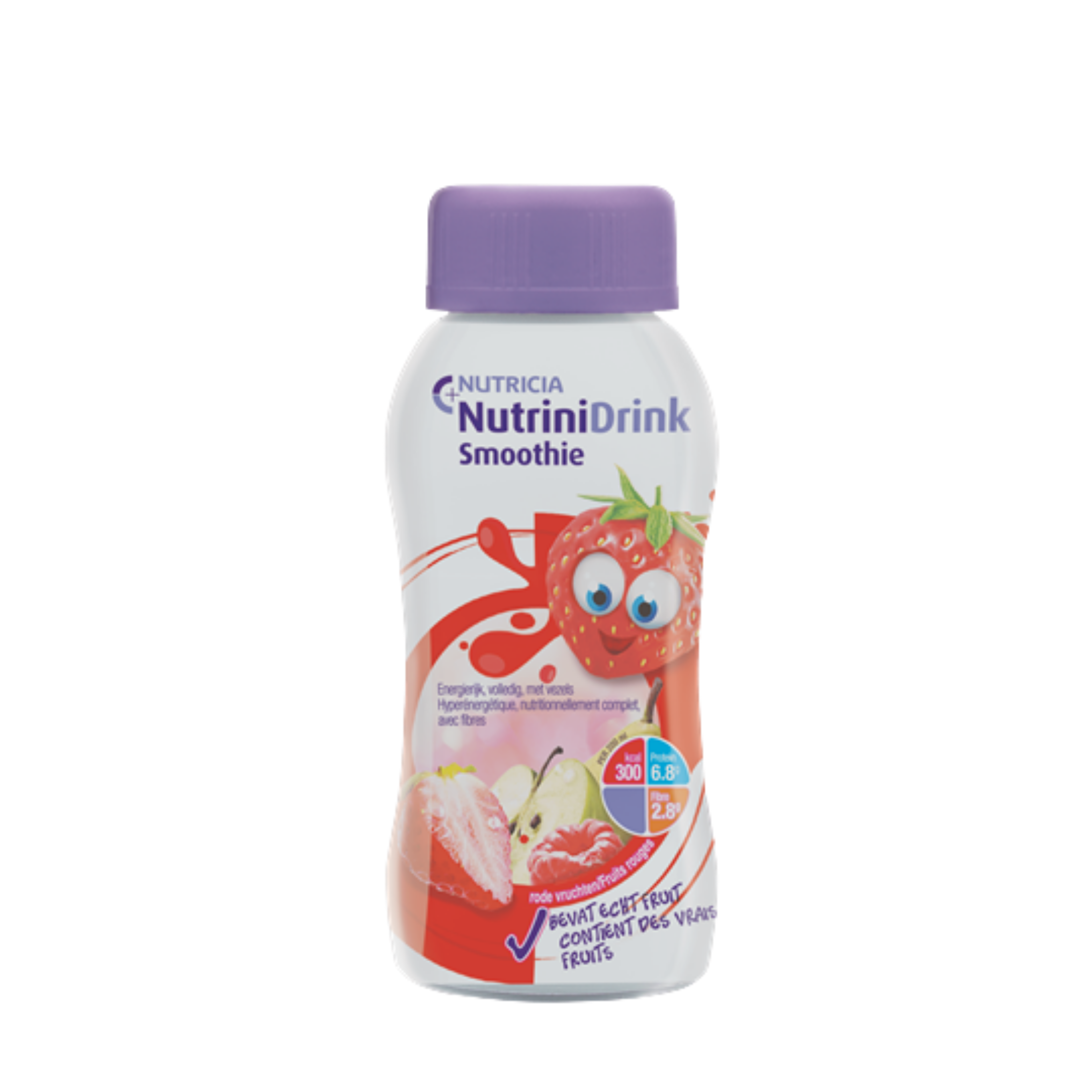 NutriniDrink Smoothie is een energierijke, volledige drinkvoeding met vezels. Bevat 15% echt fruit. Geschikt voor kinderen vanaf 1 jaar. Het bevat belangrijke voedingsstoffen zoals eiwit, energie, vezels, vitaminen en mineralen. Het kan als aanvulling op de normale voeding worden gebruikt. NutriniDrink Smoothie is een voeding voor medisch gebruik. Medische voeding wordt door uw arts of diëtist geadviseerd bij ziektegerelateerde ondervoeding en/of (risico op) groeiachterstand als aanvulling op of ter vervanging van de normale voeding. NutriniDrink Smoothie is lactose- en glutenvrij. Bevat melk, soja.