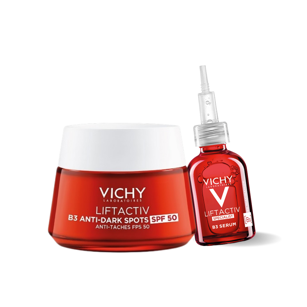 De routine set van Vichy Liftactiv angti-pigment. Met een serum en een dagcrème. Liftactiv helpt de huid verstevigen, rimpels te vernminderen en de huidteint te egaliseren.
