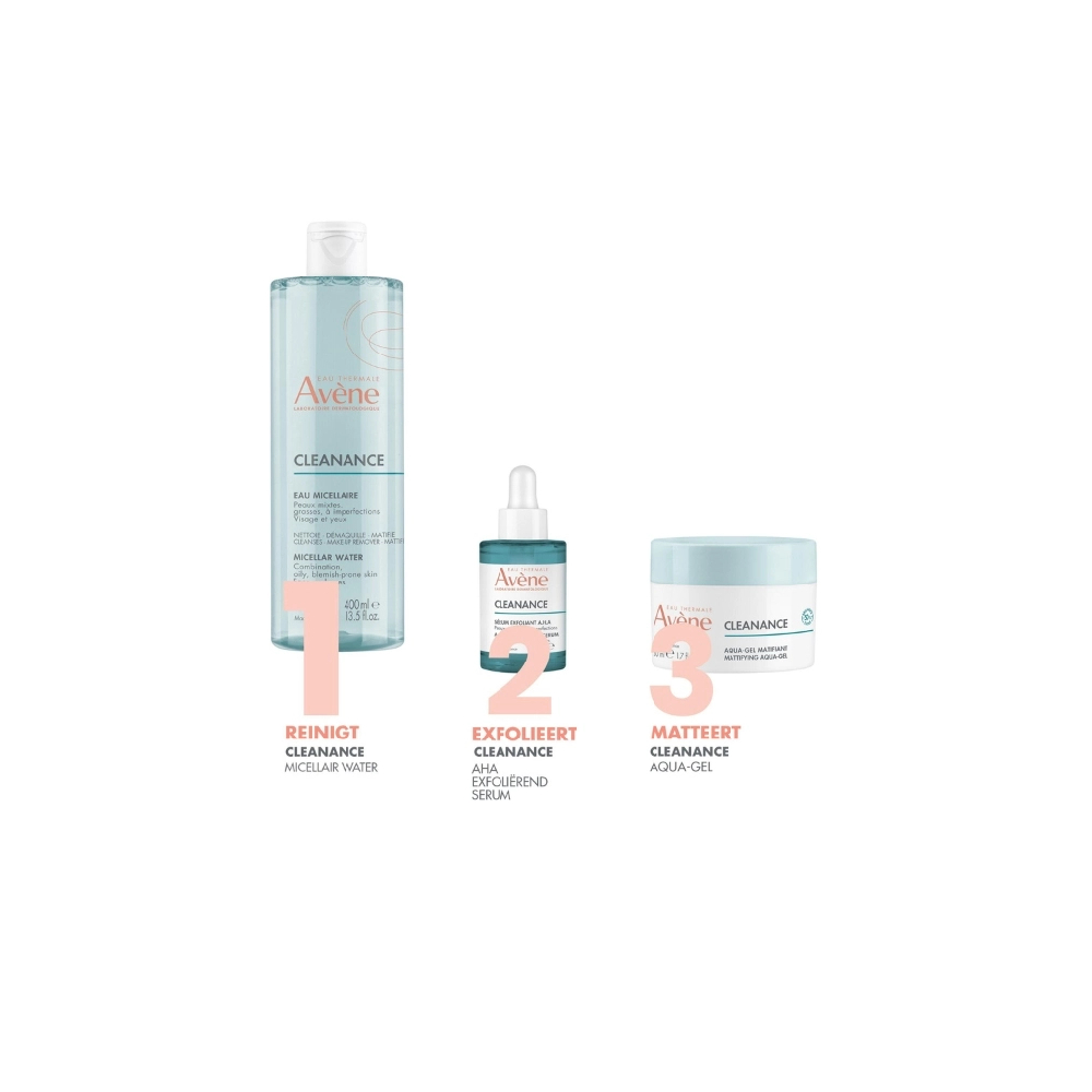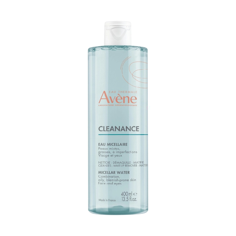 Zijn formule, die de gevoelige huid niet aantast, bevat een unieke combinatie van bestanddelen met een drievoudig voordeel: - REINIGEND EN MAKE-UP VERWIJDEREN: beperkt het glimmen en elimineert onzuiverheden (zelfs vervuilende deeltjes) en make-up dankzij zijn milde micellaire reinigende bestanddelen. - MATTEREND: Dankzij ComedoclastinTM, een plantaardig extract van Mariadistelzaden met gepatenteerde eigenschappen*, wordt het talgoverschot beperkt - VERZACHTEND: Thermaal Water van Avène werkt heerlijk verzachtend en anti-irriterend. De huid is schoon, fris, gezuiverd en glimt minder. Bioafbreekbare formule** Zeer goed verdragen door huid en ogen.  *Patent PFDC ** OECD-logo ‘s Ochtends en/of ‘s avonds met een wattenschijfje op gelaat en ogen aanbrengen. Daarna zo nodig een fijne nevel Thermaal Water van Avène verstuiven. Vervolgens de geschikte Cleanance of TriAcnéal verzorging aanbrengen.