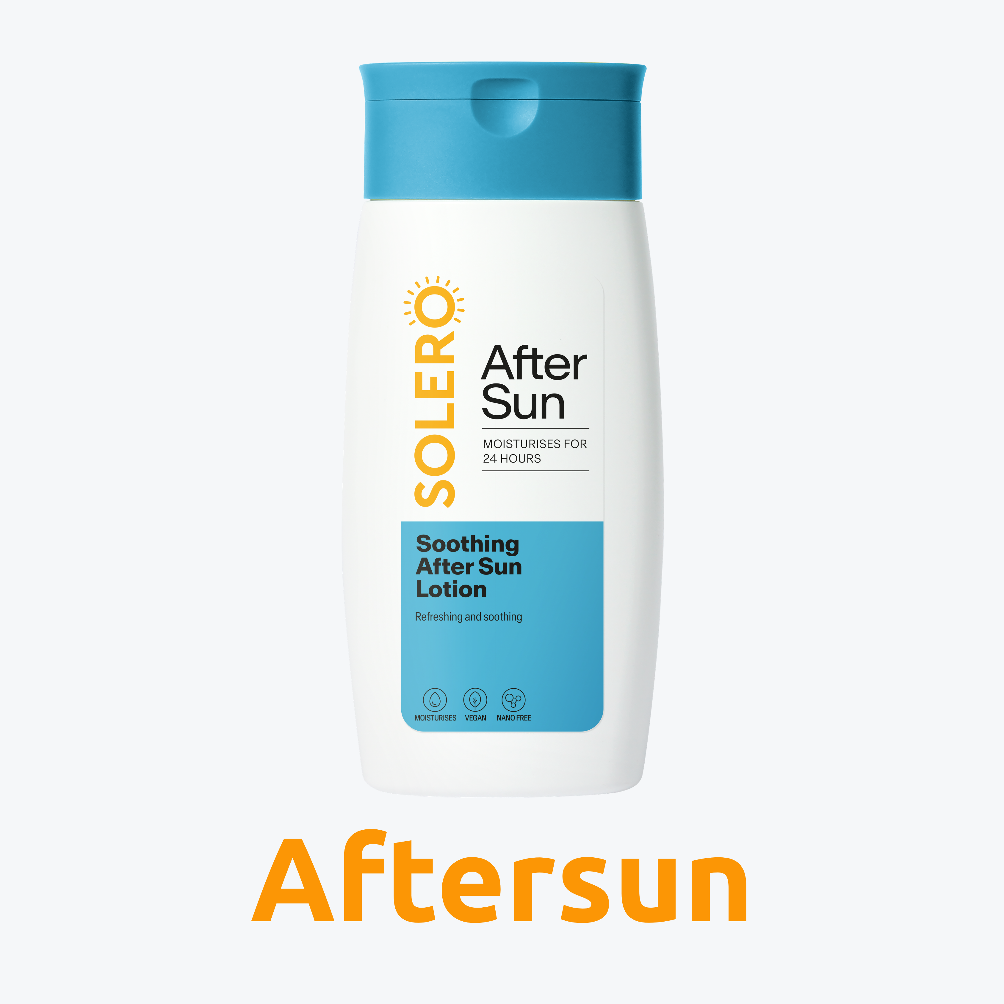 - SOLERO Anti-Roodheid Aftersun Lotion: Kalmeert de huid na de zon, met aloë vera voor verkoeling van de huid.