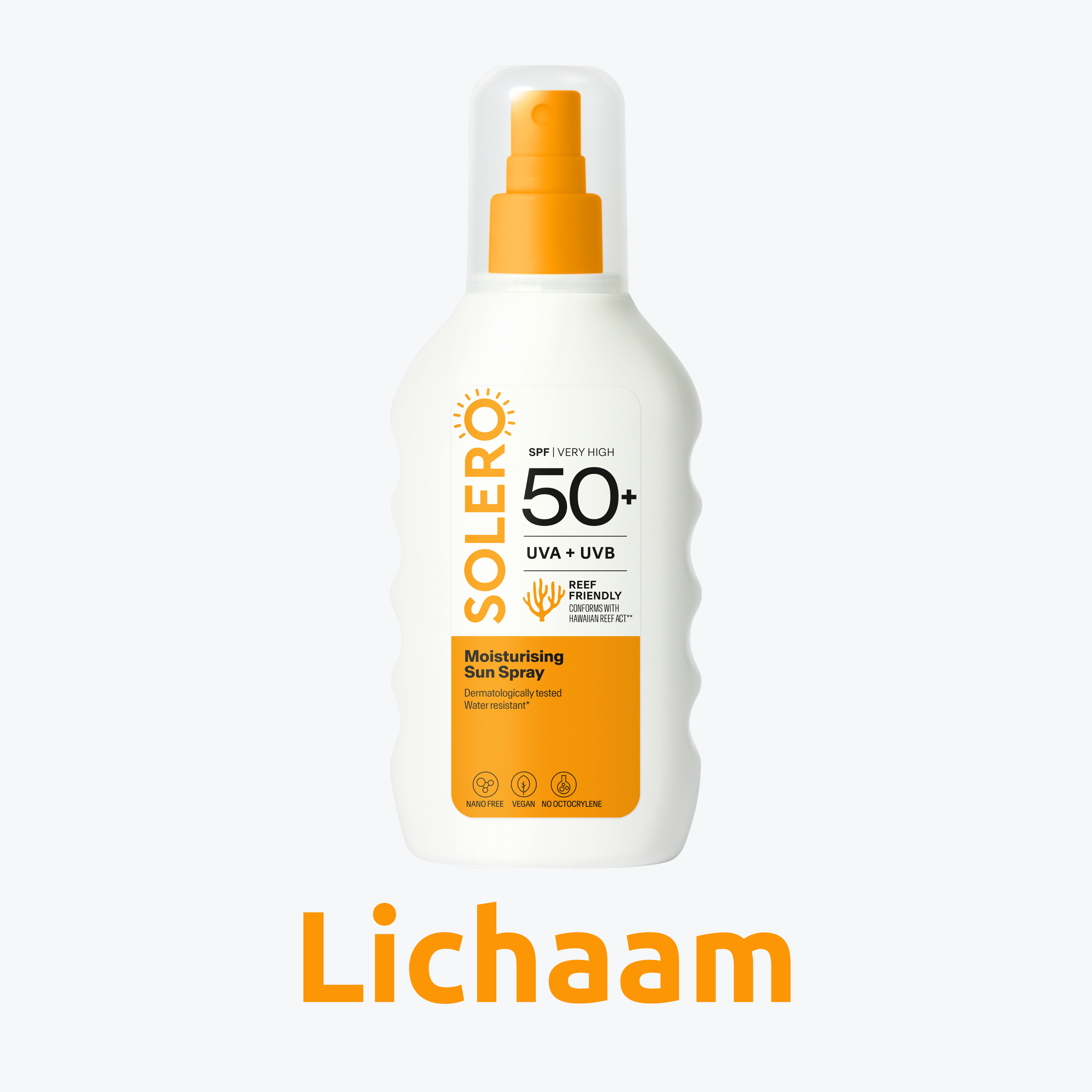 - SOLERO Kind Gevoelige Huid Zonnespray SPF 50+: Speciaal voor de gevoelige kinderhuid, hydrateert 24 uur en is waterbestendig. Ideaal voor buiten spelen of het tijdens het zwemmen.