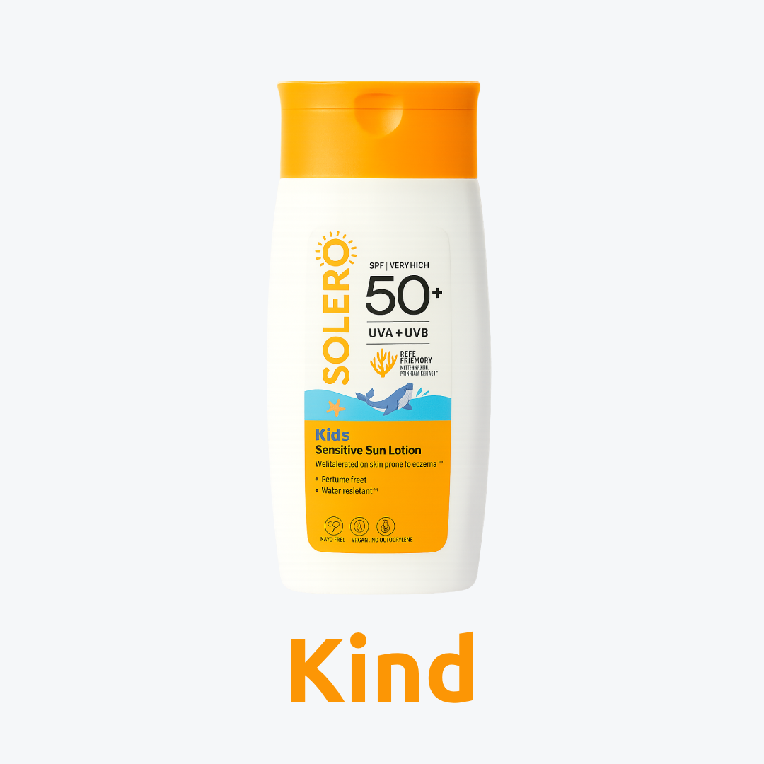 - SOLERO Kind Gevoelige Huid Zon Lotion SPF 50+: Geurvrije lotion, speciaal voor de gevoelige huid, dermatologisch getest.