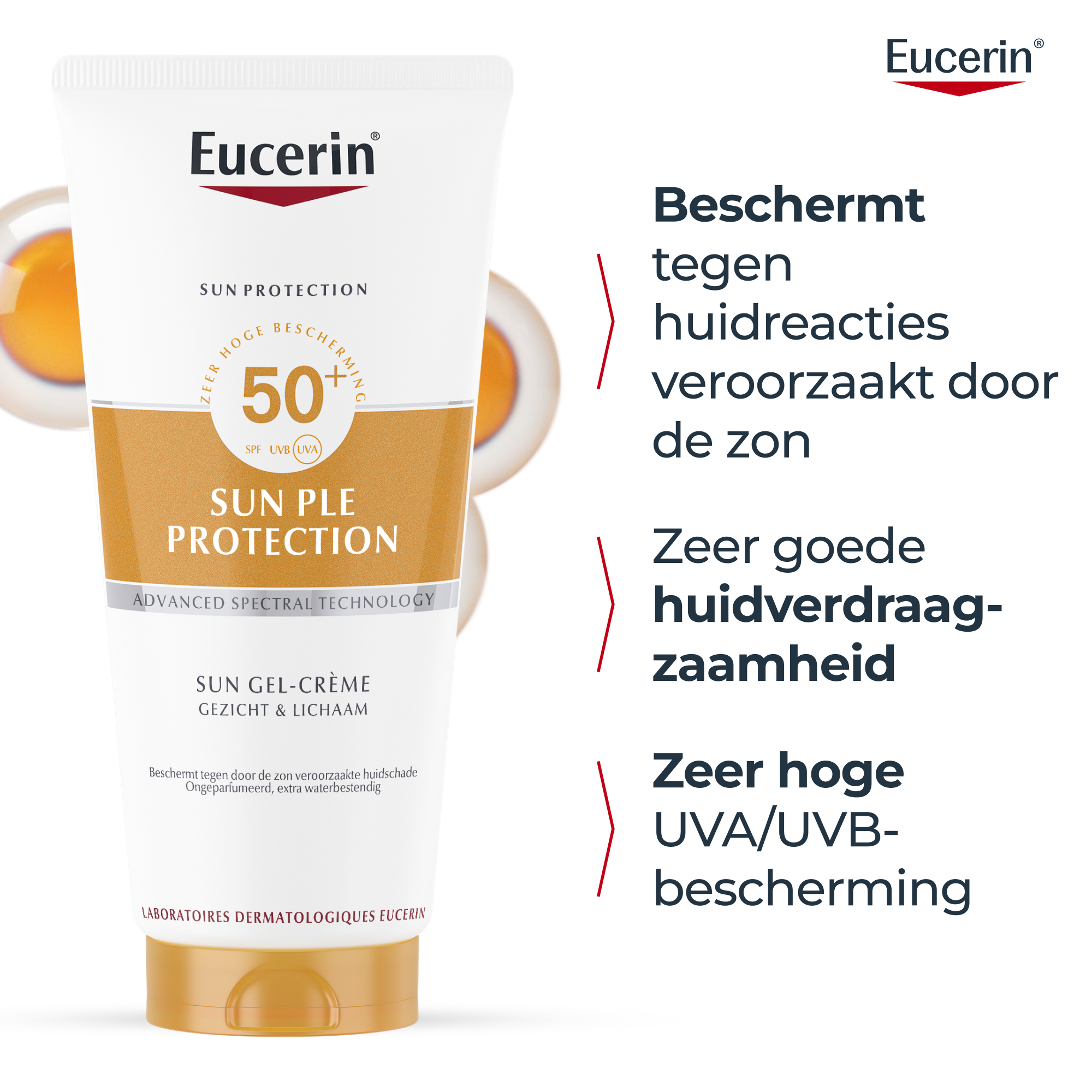 De zonbescherming van Eucerin® met ADVANCED SPECTRAL TECHNOLOGY combineert UVA- en UVB-filters voor een zeer hoge UV-bescherming. Daarnaast bevat het Licochalcone A, dat helpt bij het neutraliseren van vrije radicalen gegenereerd door UV en hoogenergetisch zichtbaar licht (blauw licht).