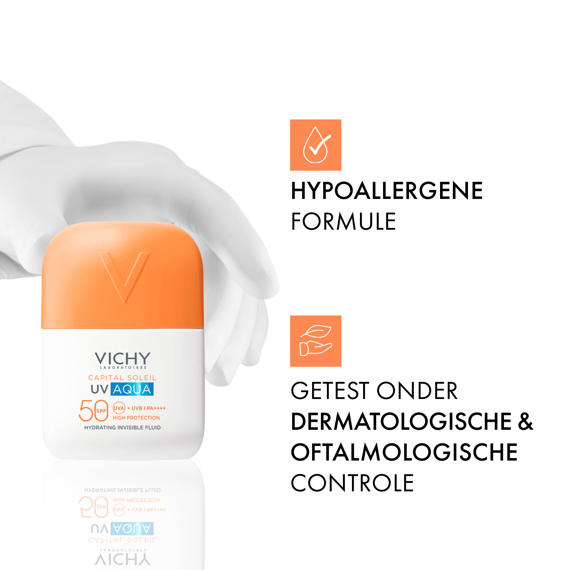 De nieuwe Capital Soleil UV Aqua SPF50 Onzichtbare Zonnefluïde van Vichy is een hydraterende gezichtsfluïde die dagelijks geavanceerde UV-bescherming biedt, met een onzichtbare finish op de huid. De ultralichte textuur, vergelijkbaar met water, laat een fris gevoel achter na het aanbrengen. Deze SPF50 is voorzien van UV Aqua Technologie die hoge bescherming biedt tegen UVA, UVB, vervuilende deeltjes, infrarood en oxidatieve stress, dankzij de lichte textuur op waterbasis. Capital Soleil UV Aqua SPF50 Onzichtbare Zonnefluïde biedt tot 24 uur* langdurige hydratatie. De UV Aqua SPF50 Onzichtbare Zonnefluïde van Capital Soleil combineert bescherming met hydratatie, speciaal voor een droge huid. De fluïde is ook geschikt voor een gemengde tot vette huid en houdt overtollig talg tot 12 uur** lang onder controle. De waterbestendige formule is geparfumeerd en hypoallergeen, en is dermatologisch en oftalmologisch getest. De precieze applicator maakt het aanbrengen eenvoudig en aangenaam. *Instrumentele test, 30 proefpersonen. **Instrumentele test, 24 vrouwen.
