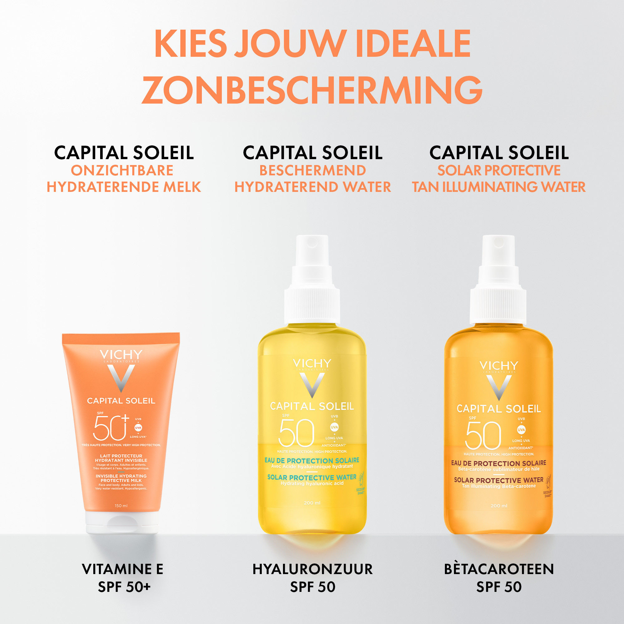 Capital Soleil Onzichtbare Hydraterende Beschermende Melk SPF50+ van Vichy biedt geavanceerde UV-bescherming om schade door blootstelling aan de zon te voorkomen. De exclusieve, multi-gepatenteerde Netlock technologie zorgt voor 24 uur* langdurige hydratatie en vormt een krachtige, onzichtbare UV-beschermende laag zonder witte waas. De formule is water-, zand- en zweetbestendig en geschikt voor gebruik op gezicht en lichaam, zowel bij volwassenen als kinderen. De lichte textuur heeft een niet-vette en niet-kleverige finish die bestand is tegen transpiratie, zelfs tijdens intensieve fysieke activiteiten buitenshuis. De hypoallergene formule is getest onder dermatologisch toezicht en speciaal ontwikkeld voor een gevoelige huid. Geschikt voor alle huidtinten, zonder zichtbare resten. *Instrumentele test.